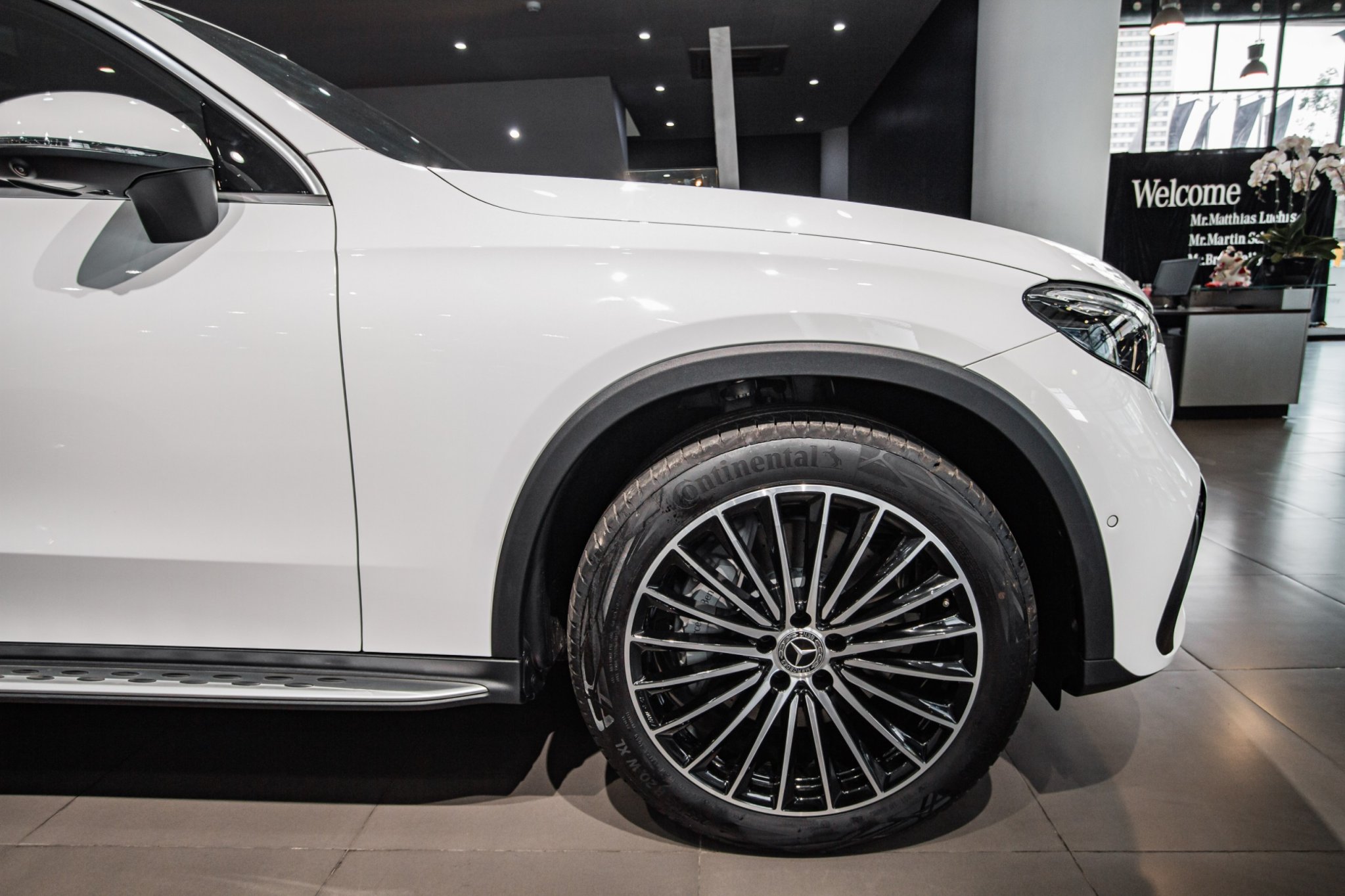 La zăng đa chấu, kích thước lớn. Gương chiếu hậu tích hợp đèn báo rẽ. Phiên bản GLC 300 4MATIC sở hữu mâm hợp kim thể thao AMG thiết kế nan đa chấu với kích thước 20 inch