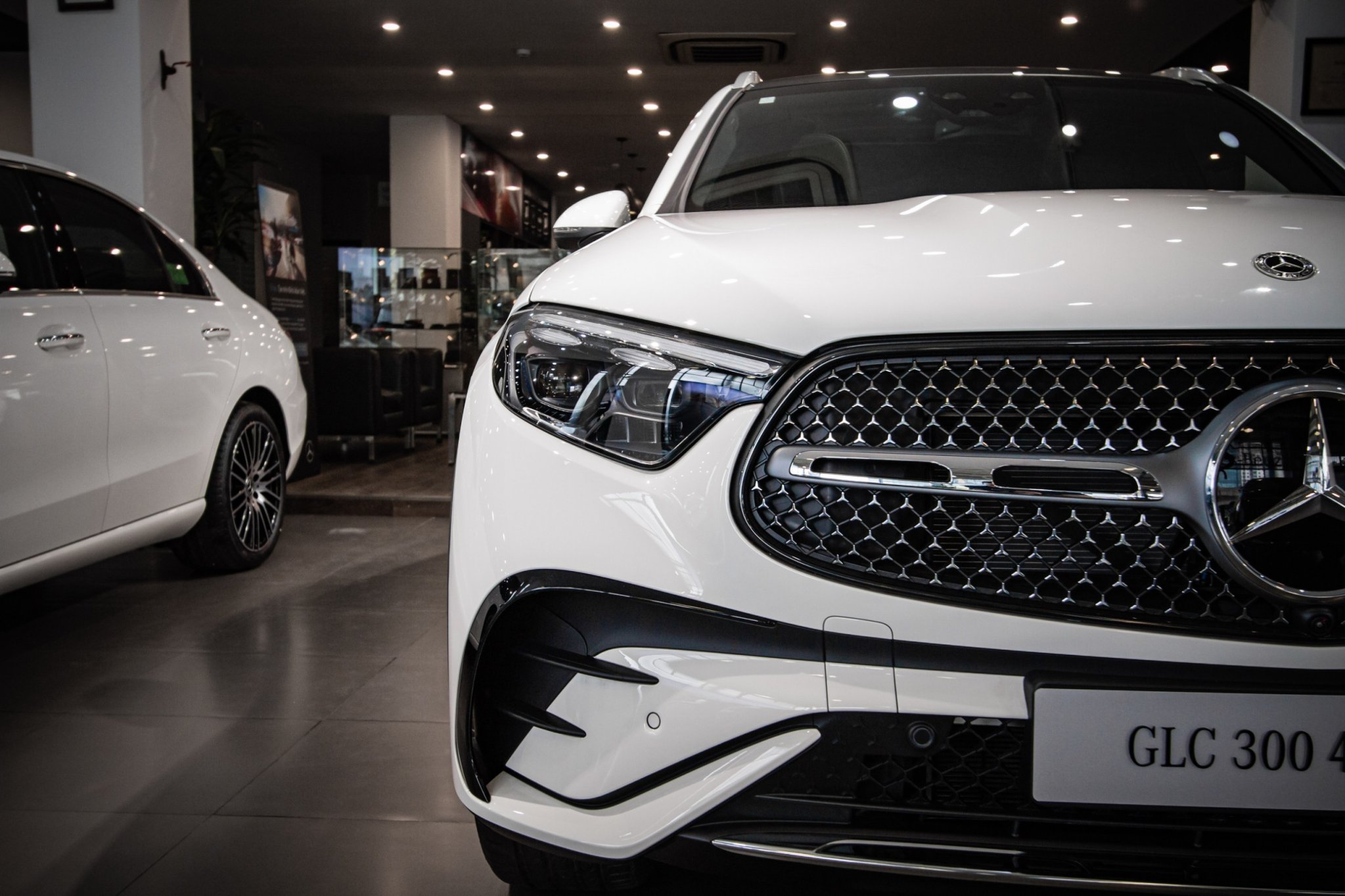 Đèn pha LED tiêu chuẩn được mở rộng, nối liền vào lưới tản nhiệt. Tùy thuộc vào phiên bản, lưới tản nhiệt trên GLC 2025 sẽ có hình dạng khác nhau. Các bản AMG GLC có cửa gió lớn hơn, các đường viền có nhiều tùy chọn màu sơn hơn, trong khi bản tiêu chuẩn có viền mạ chrome. Bề mặt thân xe được kéo dài với thiết kế mới ở các góc cạnh hai bên và nhấn mạnh tỷ lệ của vòm bánh xe, nhờ đó tạo ra sự cân bằng giữa nét thanh lịch và sự mãnh mẽ.